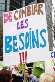 Le manque de diversité des affiches et banderoles en était l’inévitable envers de la médaille. Heureusement que le photographe amateur que je suis a pu compter sur quelques très rares affiches artisanales mais malheureusement sur aucun déguisement qui donnent un zeste culturel aux manifestations. La possibilité pour les collectifs hors Front commun de se regrouper derrière leur bannière n’aurait-elle pas faciliter leur mobilisation tout en démontrant que la force des appuis au Front commun n’est pas qu’une affaire de nombre ?